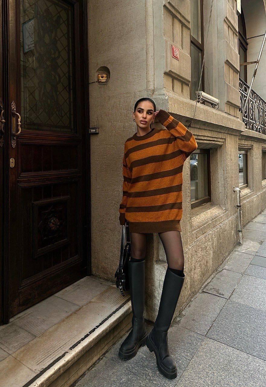 Pull Robe à détails rayés Taille Standard Réf1182