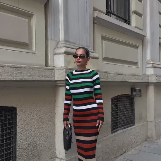 Robe Midi en Tricot à Rayures Colorées Réf2504