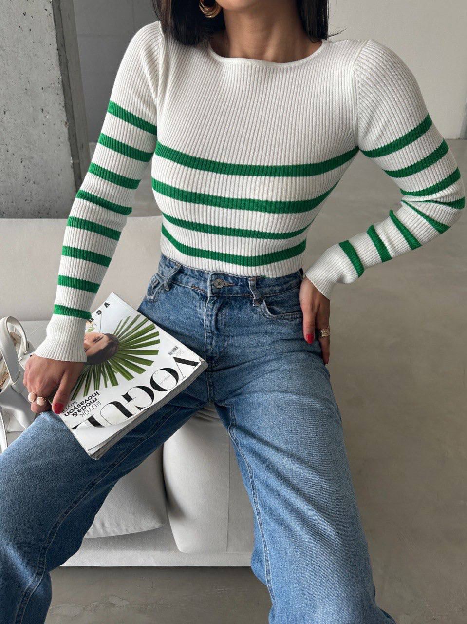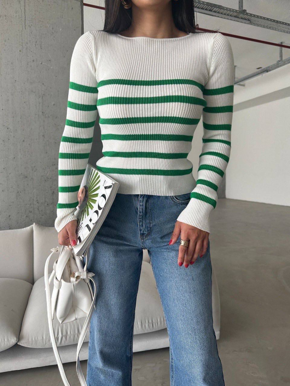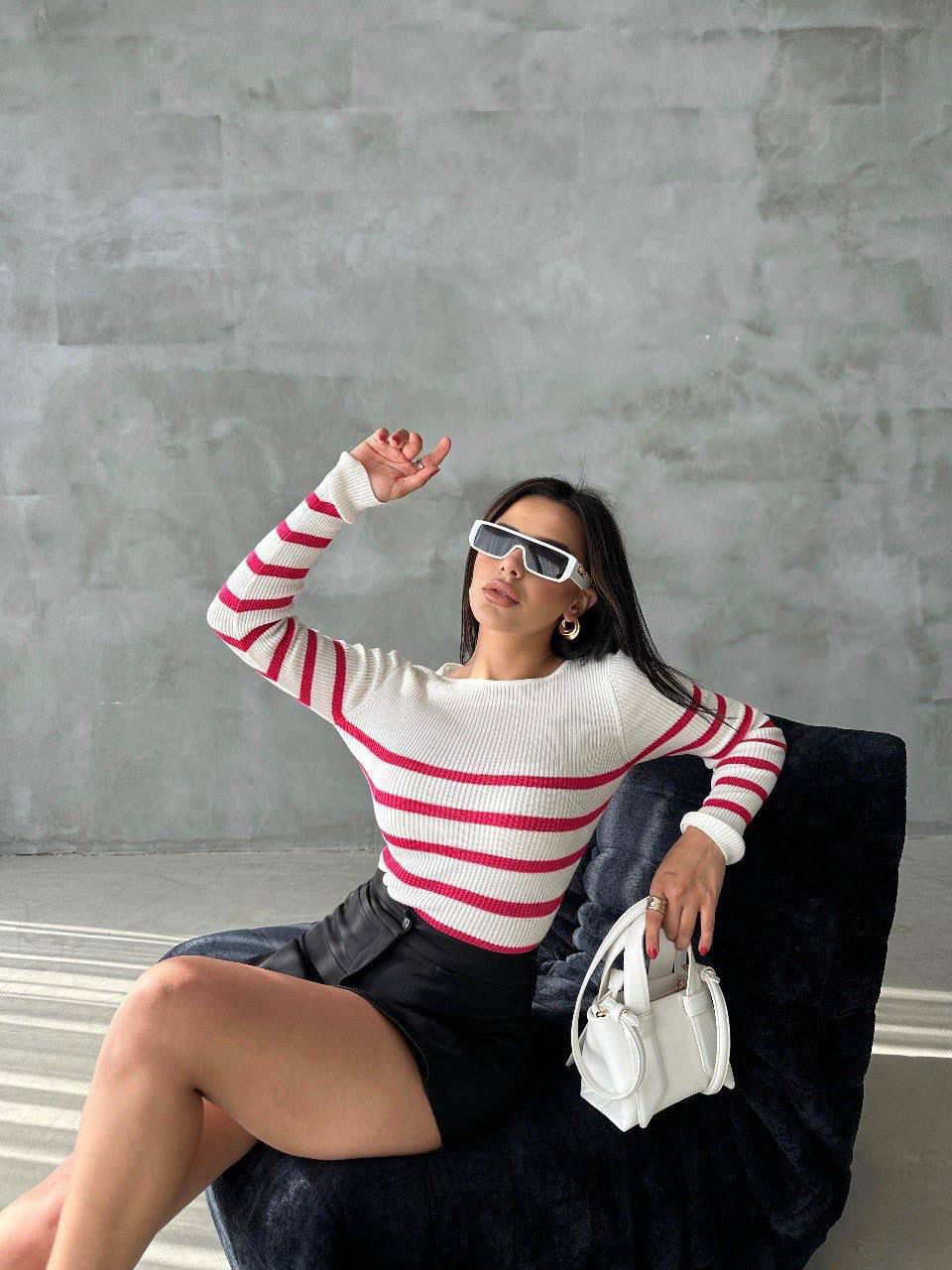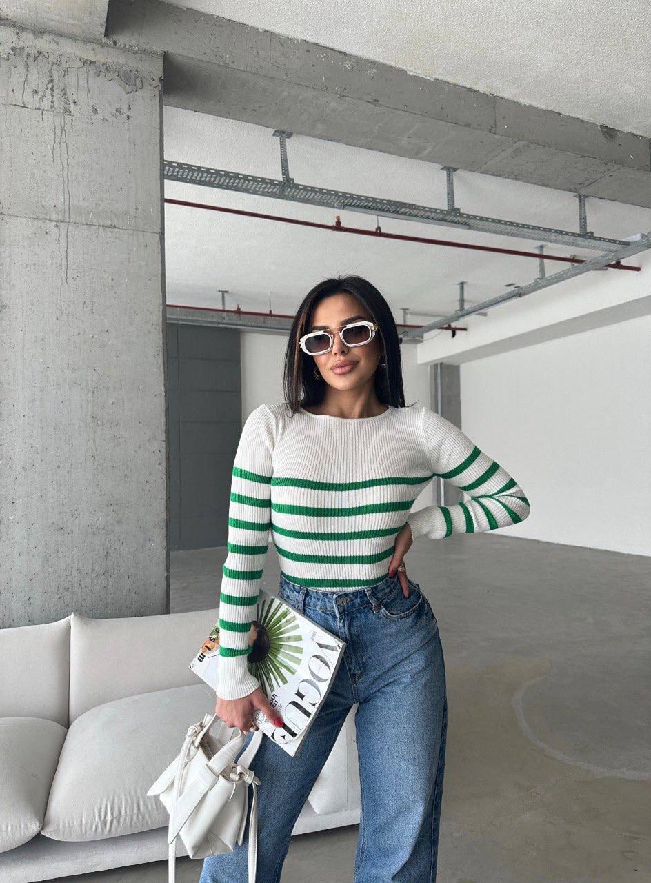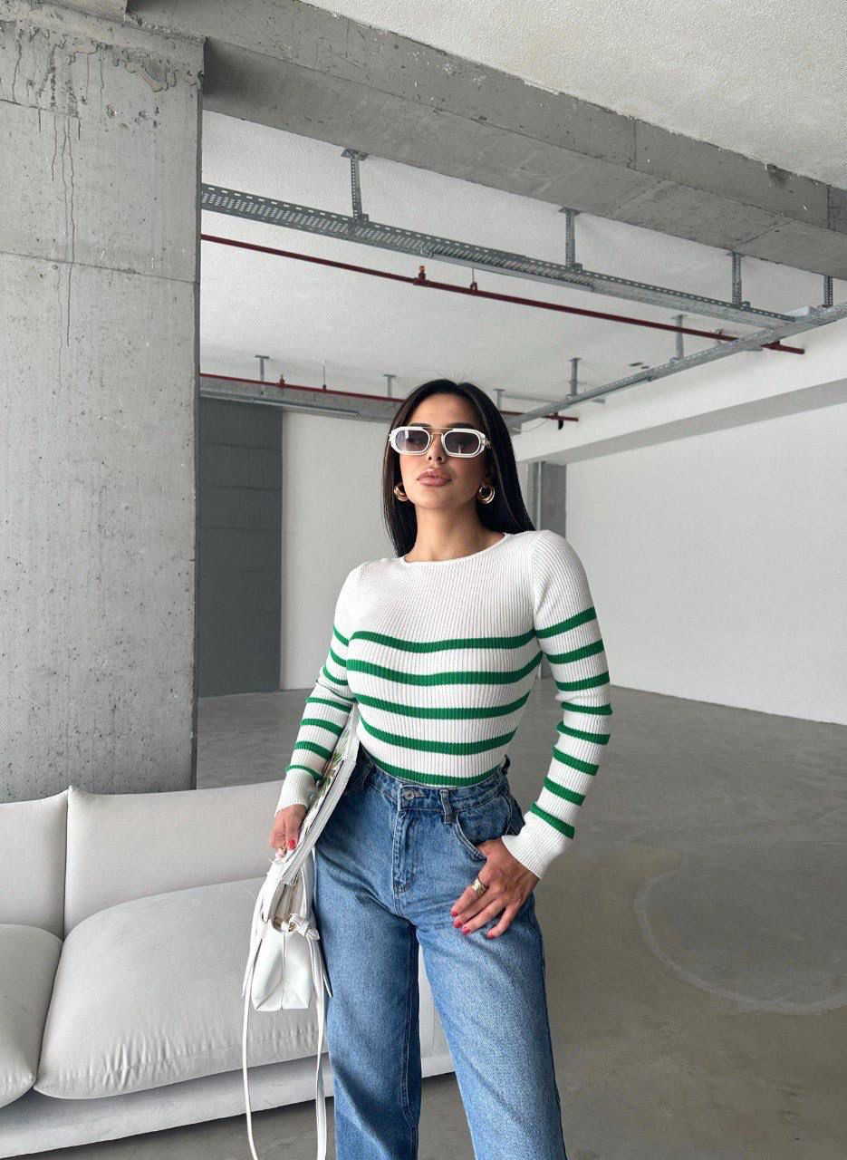 Pull Ajusté Rayé à col rond Taille Standard RéfSH10
